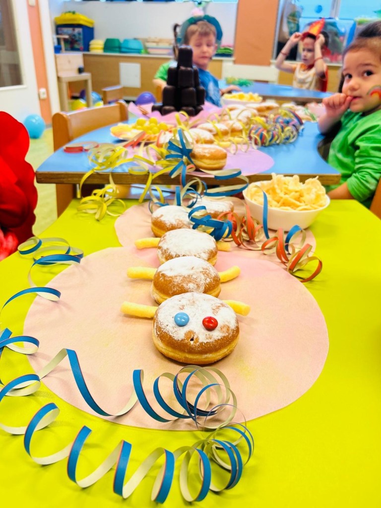 Unser Erdbeeren-Kirschenfest war nicht nur sehr rot ..sondern auch sehr lustig ..und lecker…Wir wünschen unseren lieben Papas ..Alles Gute zum Vatertag !..wir spielen ein Puppentheater für unsere Kids..wie man sieht hat’s großen Spaß gemacht !Michi unsere Handpuppen hat uns besucht .Das war lustig!Liebe Mamas ..wir wünschen Euch nochmals von Herzen einen schönen Muttertag !Es war eine große Freude mit Euch gemeinsam zu feiern!Der Zauberer war bei uns ..mit einer tollen Show!Und er hat zum Schluss sogar noch für jedes Kind einen Ballon Hund gezaubert..who let the dogs out..Liebe Eltern-ein herzliches Danke !Es war ein großartiger Abend mit Euch !…wir sind schon in Feierlaune…Der Osterhase war heute bei uns und hat jedem Kind ein Nestchen versteckt;)unsere liebe Zaki hat mit uns Osterpinzen gebacken und die waren suuuperlecker !Danke es war ein tolles Fest !Der Frühling kommt lasst uns feiern…..let‘s speak English …no Problem mit unseren wunderbaren ,neuen Bilderbüchern …Liebe Kinder gebt gut acht ..wir machen eine Schneeballschlacht …hui das war cool…..bei uns tummeln sich schon die Häschen …Fasching..Hurraaaaaa!!!!Happy Birthday ♥️