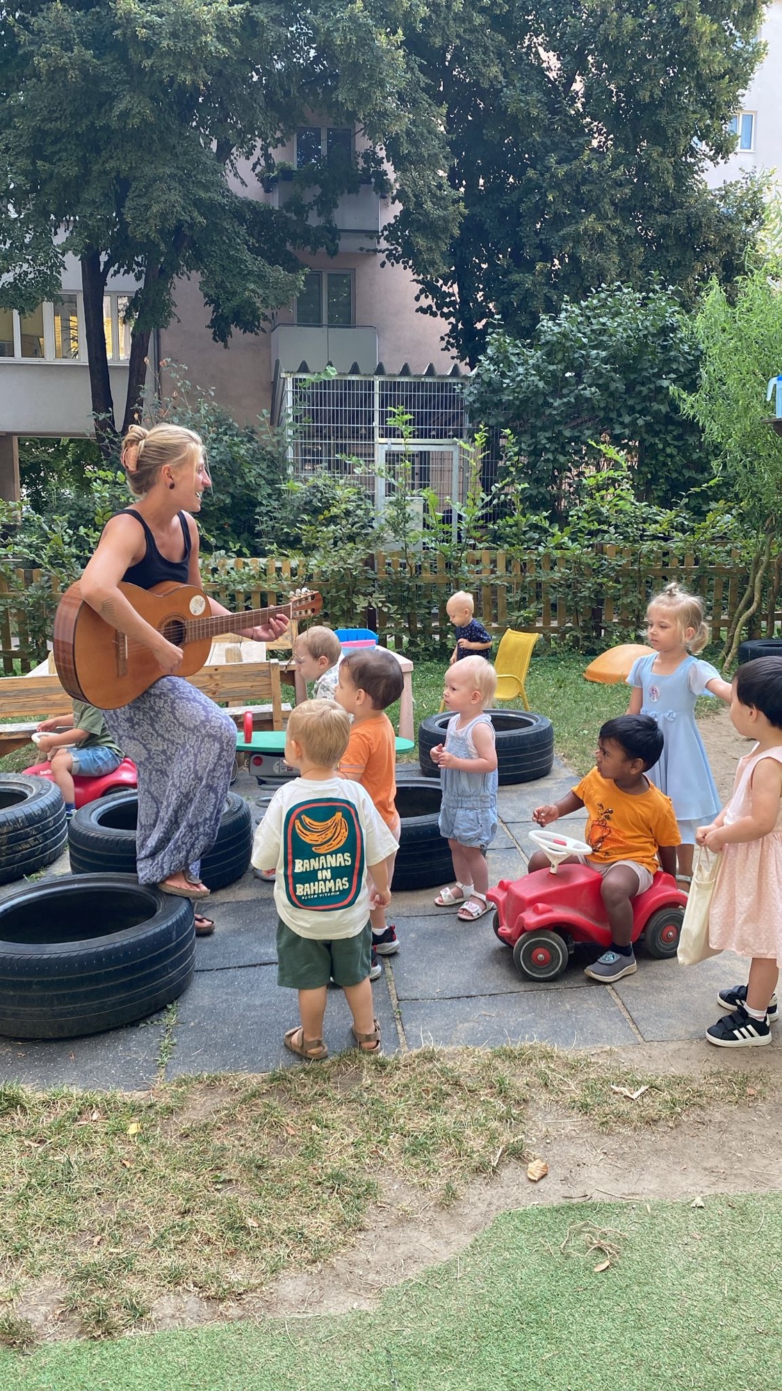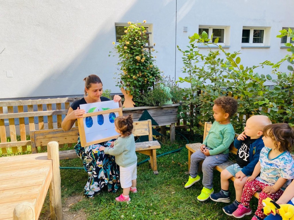 Was man mit dem Schwungtuch so alles machen kann…und zum Schluss sortieren wir noch nach Farben....wir sammeln die ersten Kastanien…Fleißige Helfer für alle Fälle:)…unsere Gartentomaten werden bald verkostet…die Erdbeeren sind schon vernascht und haben es leider nicht mehr auf ein Foto geschafft ;))Plitsch Platsch Wasserspass…..Was für eine Pracht in unserem Garten …Unser Weidentipi..herrlich..Gartenarbeit ist was Schönes ..und alle machen mit …..wir machen unseren Garten Frühlingsfit mit unseren fleißigen Kindern..da fühlt sich jede Blume wohl....wir pflanzen einen Baum ..er ist aus der Steiermark zu uns übersiedelt..wir werden ihn hegen und pflegen!Blätterrhythmik mit Schwungtuch im Garten ..Musizieren auch im Garten Hurrahhhhh....Lesestunde im Garten …Martin ..lässt uns mit der Kübelspritze gießen..Hurrah……fleißig helfen die Kinder beim Einsetzen verschiedener Samen für unseren wunderschönen Entdeckergarten..Eine Hetz ist so ein Laubhaufen schon …...wie süß ..in unserem Garten hält ein Igelchen seinen Winterschlaf..…einfach Spaß haben im Garten…Pritschen und Schütten ..Hurrah !..unsere „Großen“ erklären es den „Kleinen“…Vom Pflanzen bekommen wir gar nicht genug..wir schaffen einen Ort zum“mit allen Sinnen“erleben für unsere Kinder..unser Weidentipi fühlt sich auch sehr wohl und gedeiht prächtig !!Rutschen macht immer Spaß !Indi pflanzt mit uns Tomaten ..und alle helfen mit!Wow unsere Blumen sind gerade in voller Pracht 🙂..unsere nagelneue Rutsche…..und Spielturmerweiterung mit Kletterelementen..Danke Martín hurra!!…die Natur ist erwacht..alles beginnt zu wachsen…vor allem dem Weidentipi gehts sichtlich gut;)Martin hat uns ein Weidentipi gebaut ..und Indi bepflanzt mit den Kids die Töpfe neu…..die ersten Insekten-Beobachtungen starten :“Wow so ein toller Käfer“…zu jeder Jahreszeit schön ,und viel zu entdecken in unserem Garten…