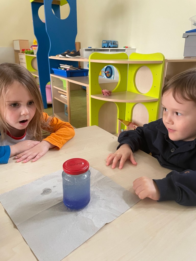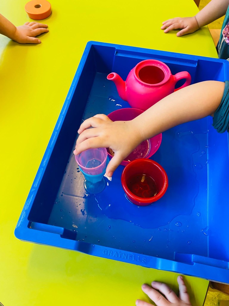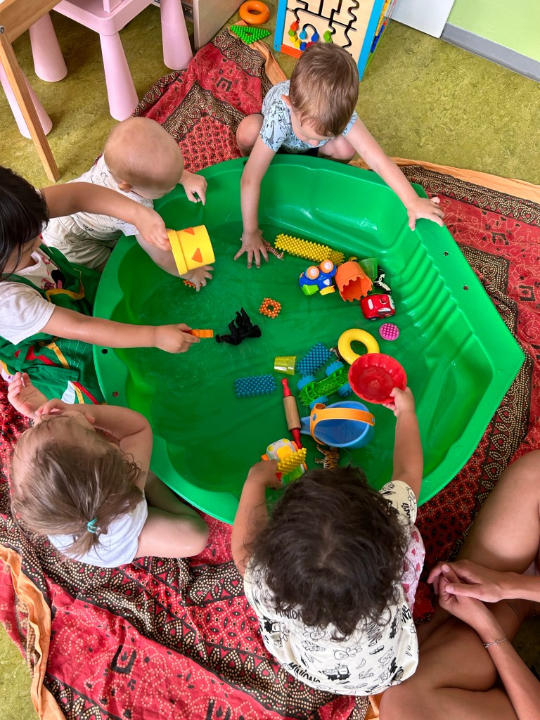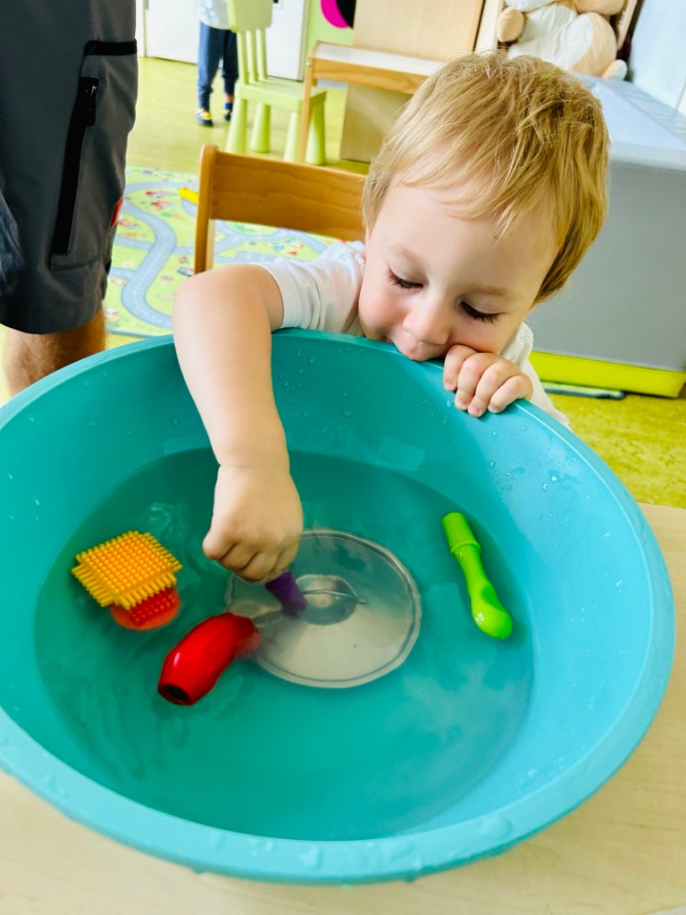 Splish Splash I am taking a bath…..pritscheln ist einfach immer eine willkommene Abwechslung und das Schütten (Mengen einschätzen)trägt zum frühen mathematischen Verständnis bei …..