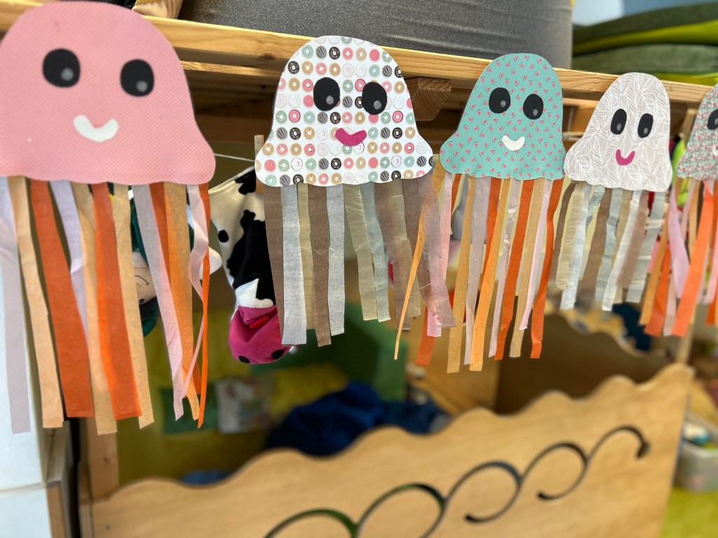 Alles neu:Kreidemalwand…,Quallen,Grillspieße zum Üben einer Reihenfolge,Roller ..und die Espressomaschine für unsere Familienecke…